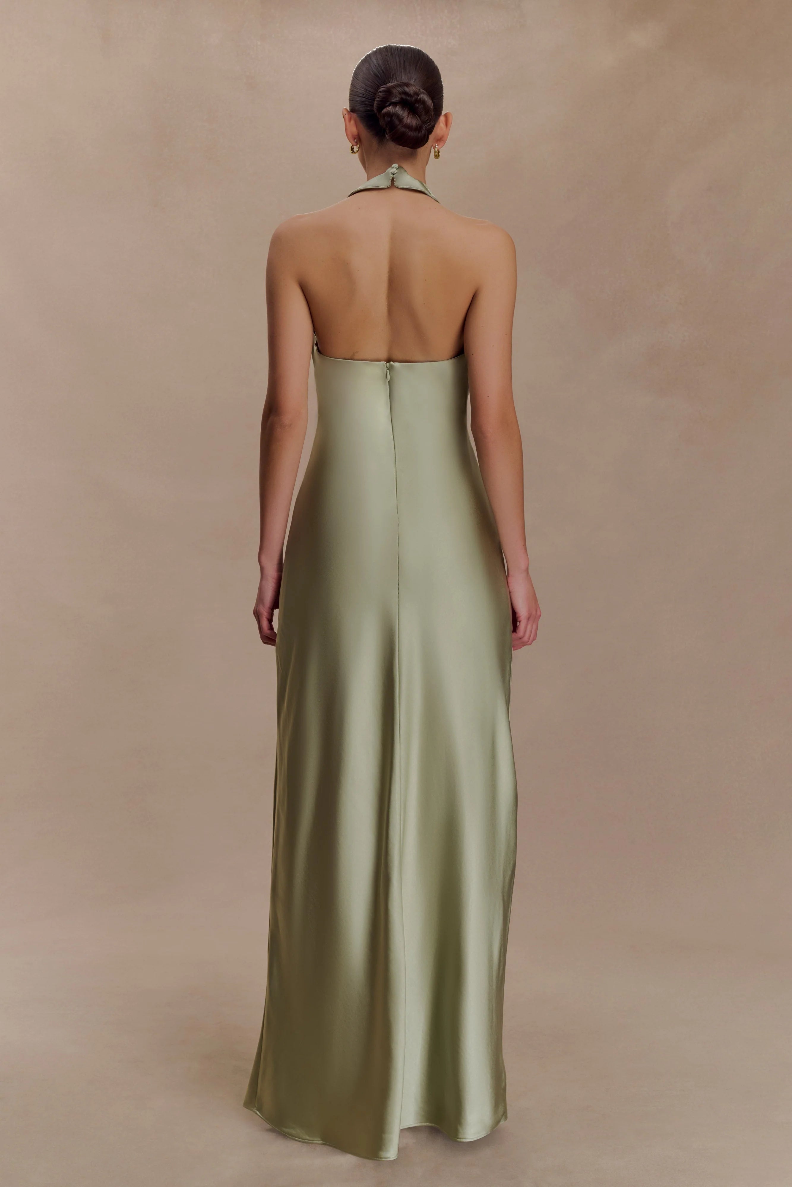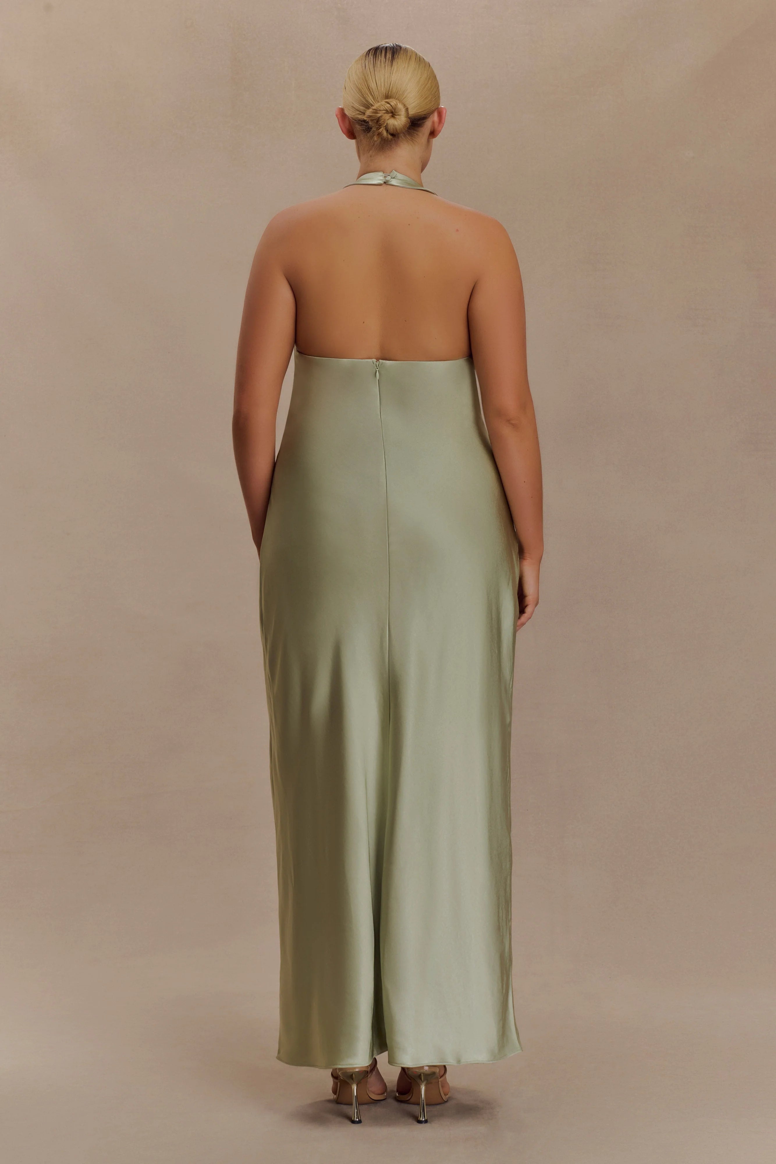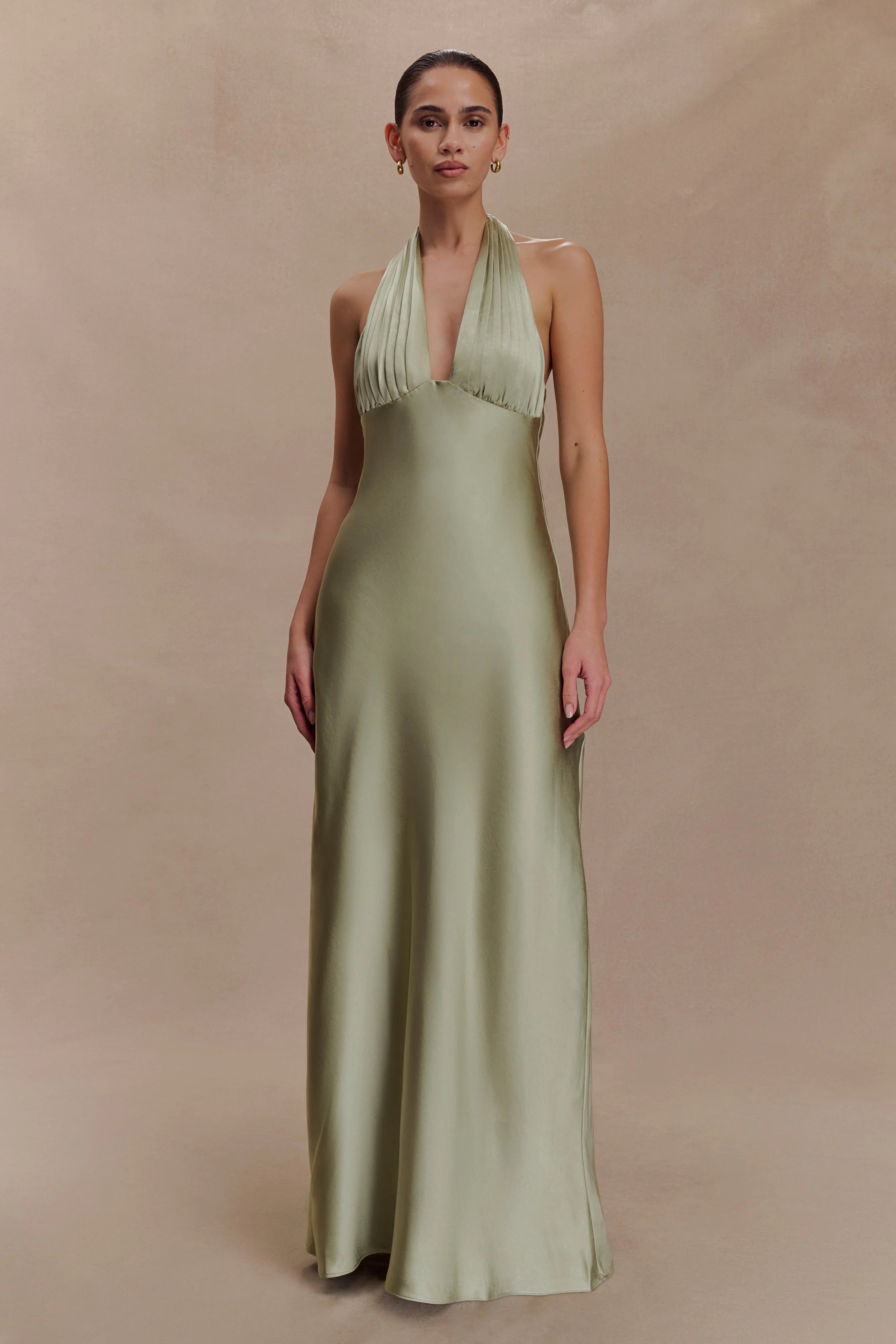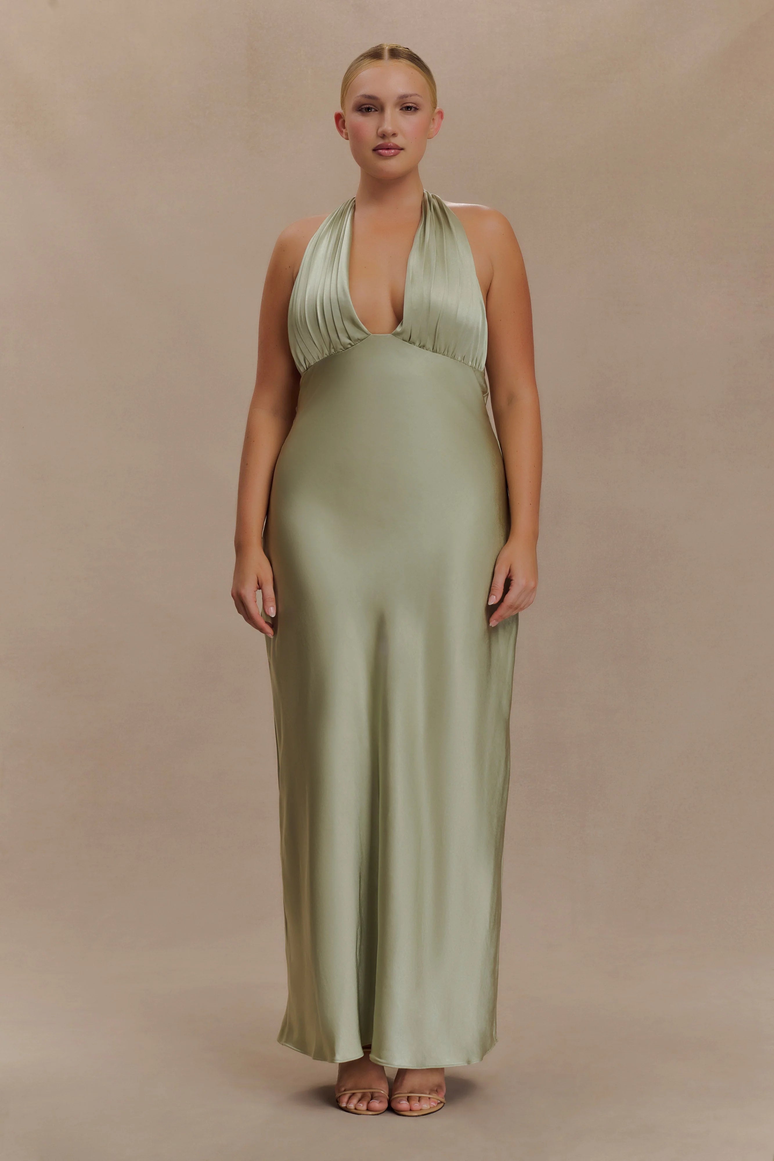 The ALICE Satin Halter Maxi Dress is your answer to elegant ease. Featuring a sleek halter neckline and deep V front, this silhouette flatters with a micro-pleated bust panel that adds subtle texture and structure. Cut from a luxe satin fabrication, the straight skirt flows into a maxi length for a timeless, elongating effect. A relaxed fit and invisible back zip ensure comfort without compromising on polish. Fully lined and made to move with you—from formal evenings to elevated celebrations.