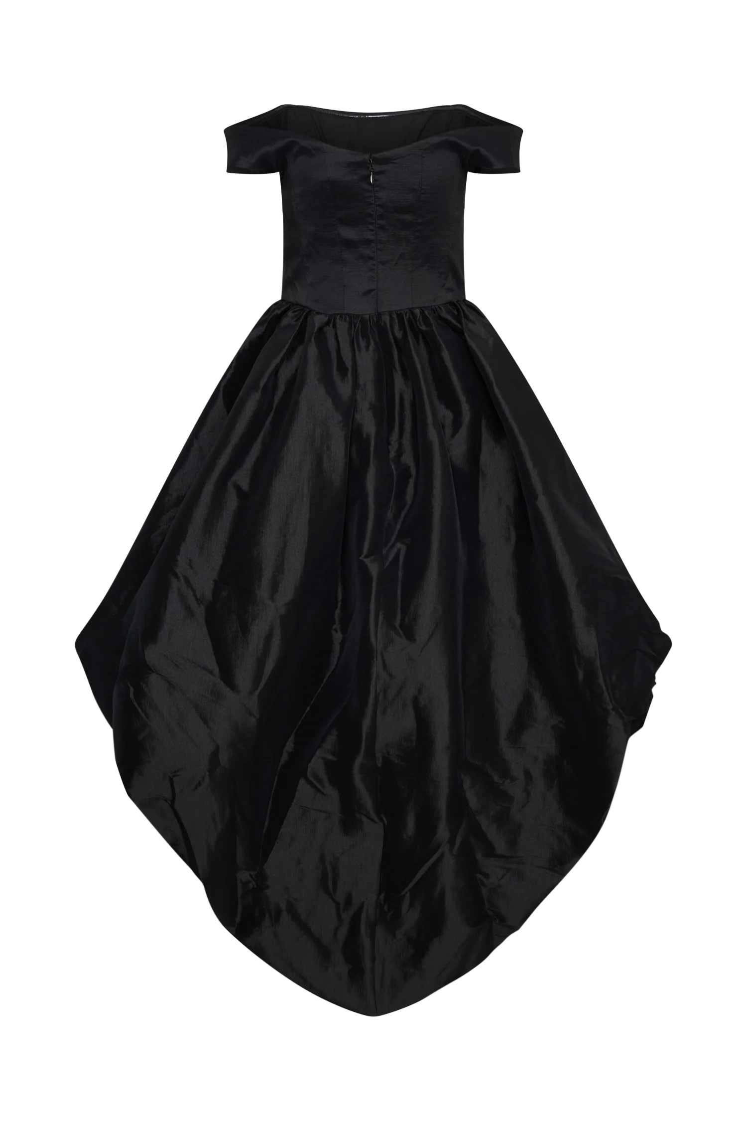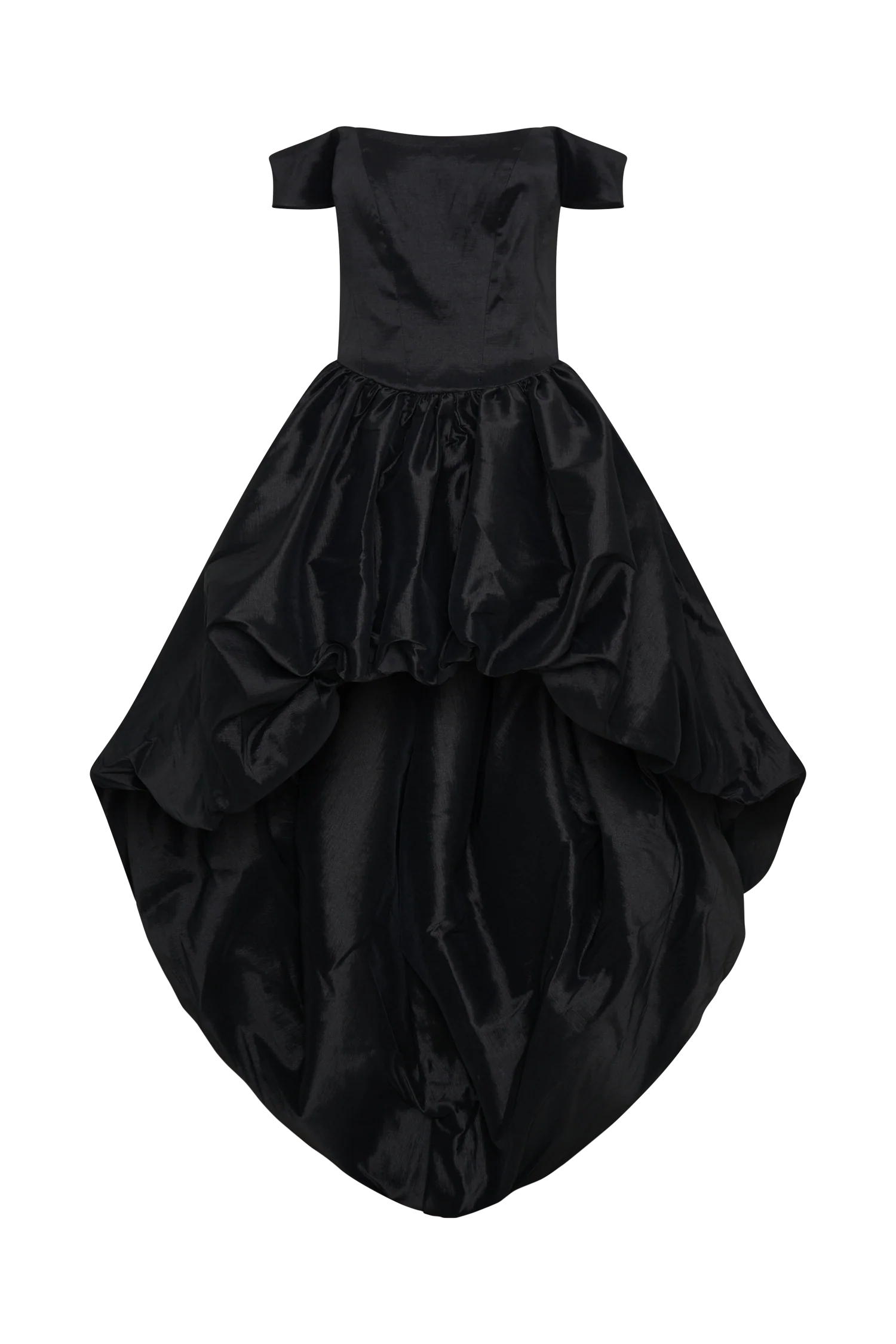 Elevate your evening wear with the AMELIA Taffeta Maxi Bubble Dress, a stunning fusion of sophistication and playful drama. Featuring a flattering bardot neckline and a fitted bodice, this dress offers a structured yet feminine silhouette. The rounded waist shape enhances the figure, while the high-low skirt shape and bubble design add volume and movement for a playful, modern touch. Fully lined for comfort and durability, this dress fastens with a centre back zip, ensuring a smooth fit. Perfect for special occasions, this dress is a statement piece that will leave a lasting impression.
