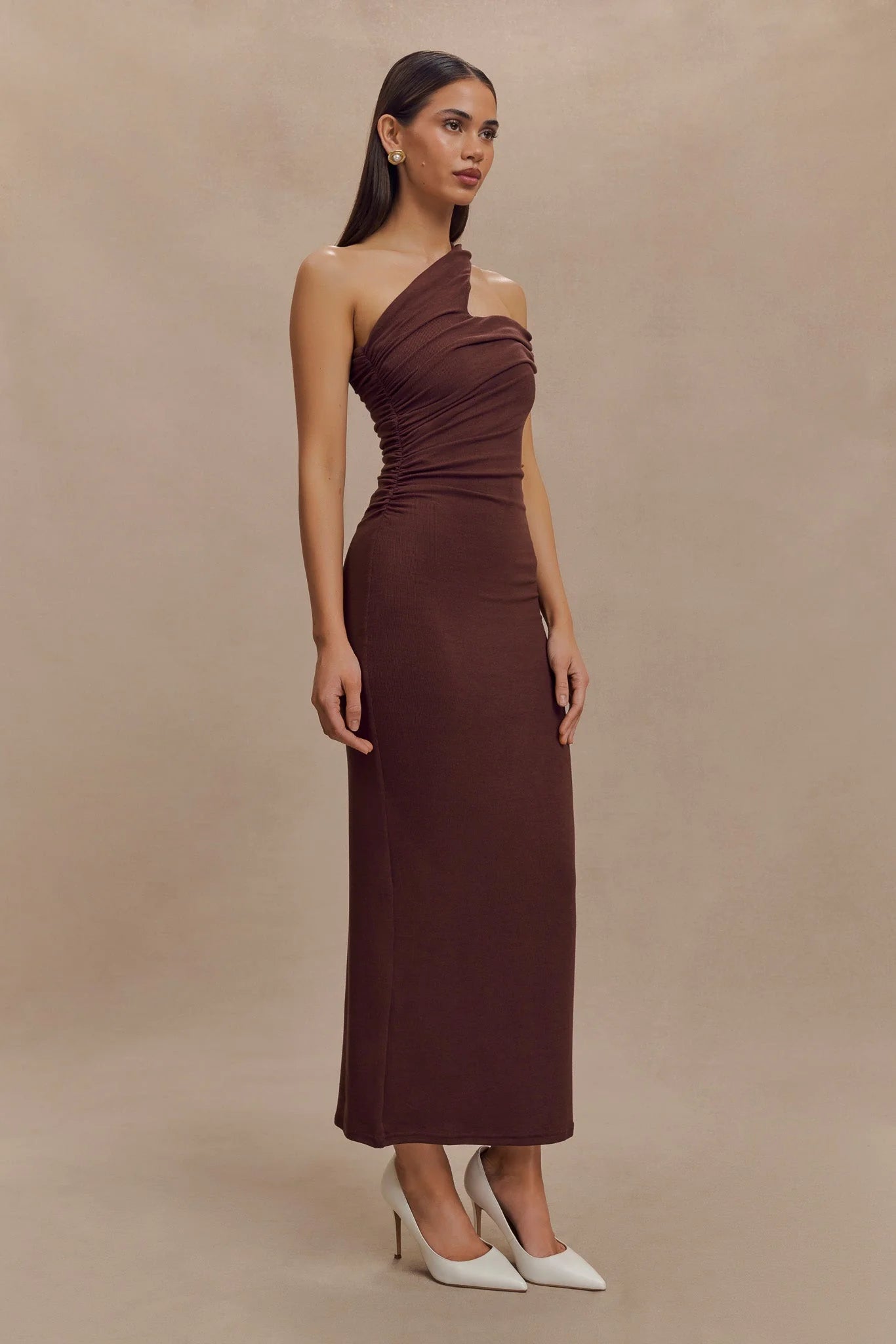The ANASTASIA One Shoulder Modal Midi Dress is a stunning blend of elegance and contemporary design. Featuring an asymmetrical neckline with a shoulder cut-out, this one-shoulder dress highlights a unique and stylish silhouette. The ruching at the straps and waist enhances its flattering fit and adds texture, while the maxi length offers a graceful look. Lined for added comfort and structure, the Anastasia Dress is perfect for making a chic statement at any special occasion or event.