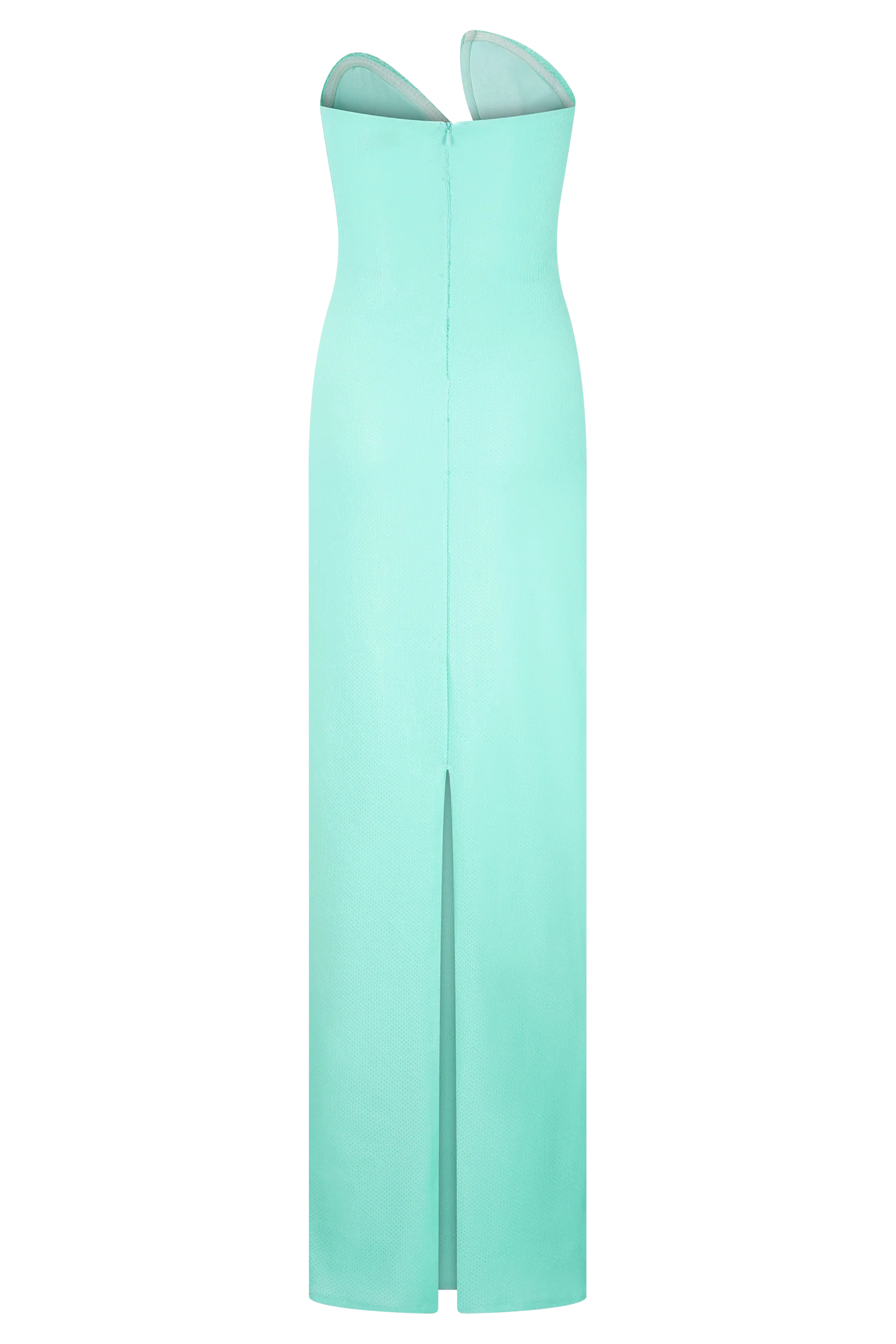 The WINSTON Strapless Sequin Maxi Dress is your ultimate showstopper. Crafted from dazzling metallic silver sequin fabric, this statement piece features an asymmetrical sculpted neckline that highlights the décolletage with modern elegance. The strapless, fitted silhouette hugs your curves before falling to a sleek maxi length, while the straight open back and invisible zipper keep the finish clean and refined. Perfect for after-dark moments when only shimmer will do.